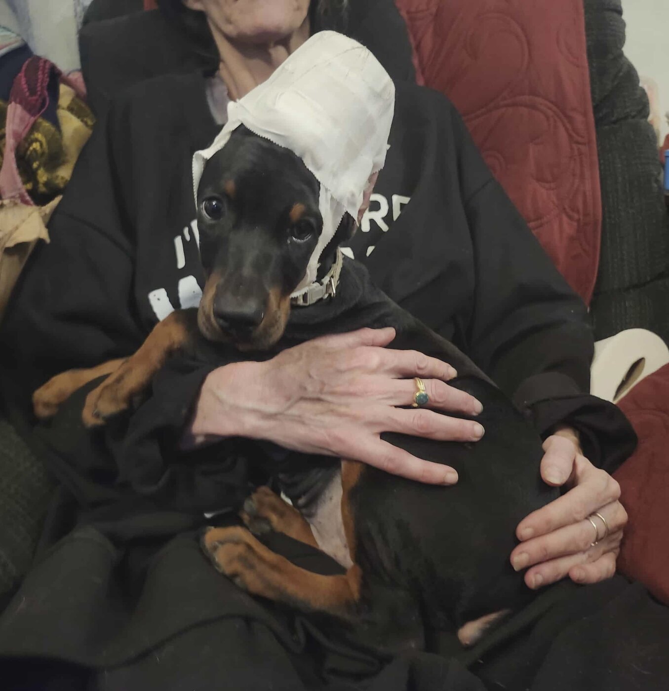 These are our Hero pup crew, born July 31st, 2025. They were born at 8pm, with 4 girls and 5 boys being born. All are the iconic Black and Rust. Each puppy has had their dewclaws removed and tails docked. They will also have their ears cropped (medium show) at 8 weeks. Stitches were removed and now the pups are ready for posting!